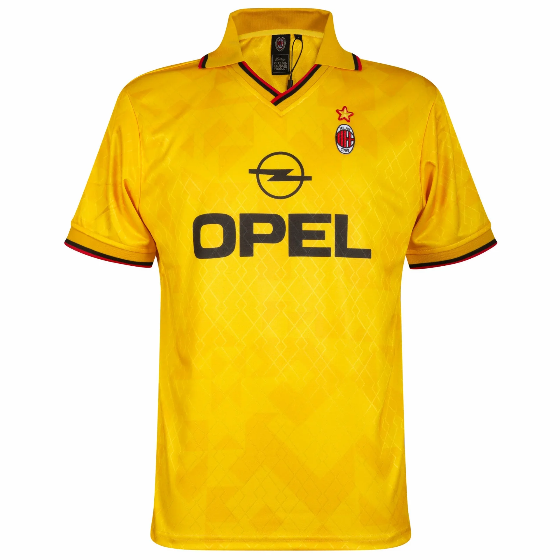 Dit is het officiële AC Milan 3e retro voetbalshirt 1995-1996. Dit Milan retro voetbalshirt is gebaseerd op het derde voetbalshirt van AC Milan uit het seizoen 1995/96. Het retro voetbalshirt is overwegend in het geel. Op het midden staat de naam van de toenmalige sponsor OPEL. De linkerborst bevat het logo van AC Milan met daarboven een gouden ster. Verder is dit AC Milan retro voetbalshirt voorzien van een v-hals en polo kraag met daarop een rood en zwart lijntje. Ook de biesjes bevatten deze kleuren. Heerlijk AC Milan voetbalshirt voor de echte Milan fan! Het AC Milan retro voetbalshirt van COPA Football heeft een normale pasvorm. Materiaal: 100% gerecycled polyester.