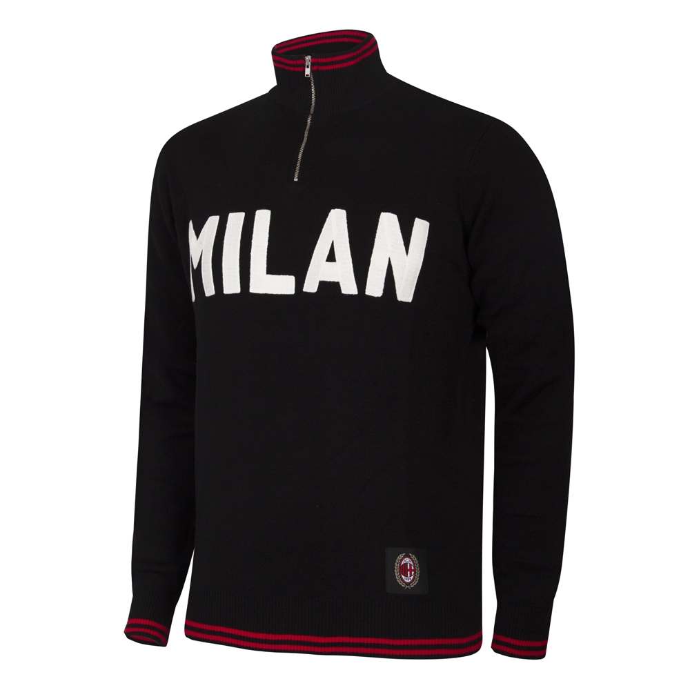 AC Milan half-zip sweater van COPA Football voor volwassenen. De AC Milan Embroidery sweater bevat een rits tot op de borst en is gebaseerd op de trainingssweaters van AC Milan uit de jaren '60. De AC Milan sweater is overwegend zwart en bevat rode en witte accenten. De rode kleur komt terug op de strepen bij de kraag, de biesjes en de onderkant van het jack. Midden op de borst een Embroidery met de naam van de Italiaanse voetbalclub, MILAN. Mooie AC Milan sweater met ritssluiting voor de echte Milan fan! De AC Milan retro sweater COPA Football heeft een normale pasvorm. Materiaal: 55% accryl - 45% katoen.