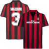 Dit is het officiële AC Milan retro voetbalshirt 1988/89 van Score Draw. De achterkant bevat de bedrukking van sterspeler Maldini (3). Dit Milan retro voetbalshirt is gebaseerd op het thuishirt van Milan uit het seizoen 1988-1989. Geweldig klassiek Rossoneri retro voetbalshirt in de bekende zwarte en rode verticale strepen. Zeer herkenbaar door de naam van de toenmalige sponsor MEDIOLANUM. De linkerborst bevat de Scudetto badge met daarboven een gouden ster. Verder is dit AC Milan retro voetbalshirt voorzien van een v-hals en een polo kraag in het rood met zwart. Mooi AC Milan voetbalshirt voor de echte Milan fan! Het AC Milan retro voetbalshirt van Score Draw heeft een normale pasvorm. Materiaal: 100% gerecycled polyester.