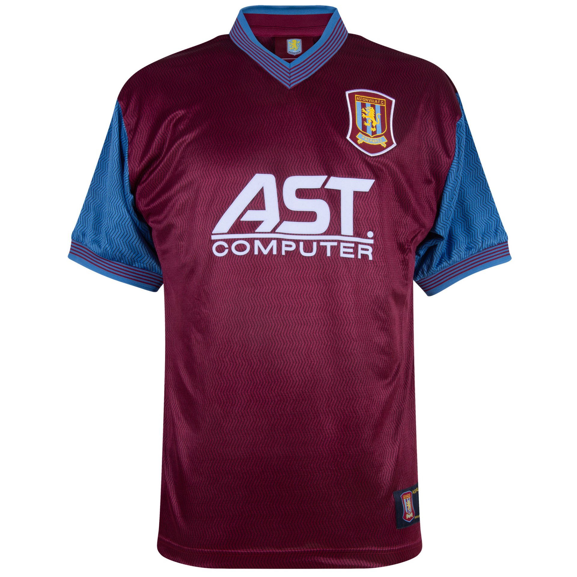 Dit retro Aston Villa shirt weerspiegelt de traditionele clubkleuren in donkerrood en het karakteristieke ontwerp uit die periode. Het clubembleem prijkt trots op de linkerborst en benadrukt de rijke historie van de club uit Birmingham. Midden op de borst wordt het shirt gekenmerkt door de naam van de toenmalige sponsor AST Computer. Verder ishet Aston Villa 1997/98 retro voetbalshirt voorzien van een all-over print van dunne zig-zag strepen. Dankzij het lichte en comfortabele materiaal is dit shirt perfect om te dragen op wedstrijddagen, casual momenten of als waardevolle toevoeging aan je retro voetbalcollectie.