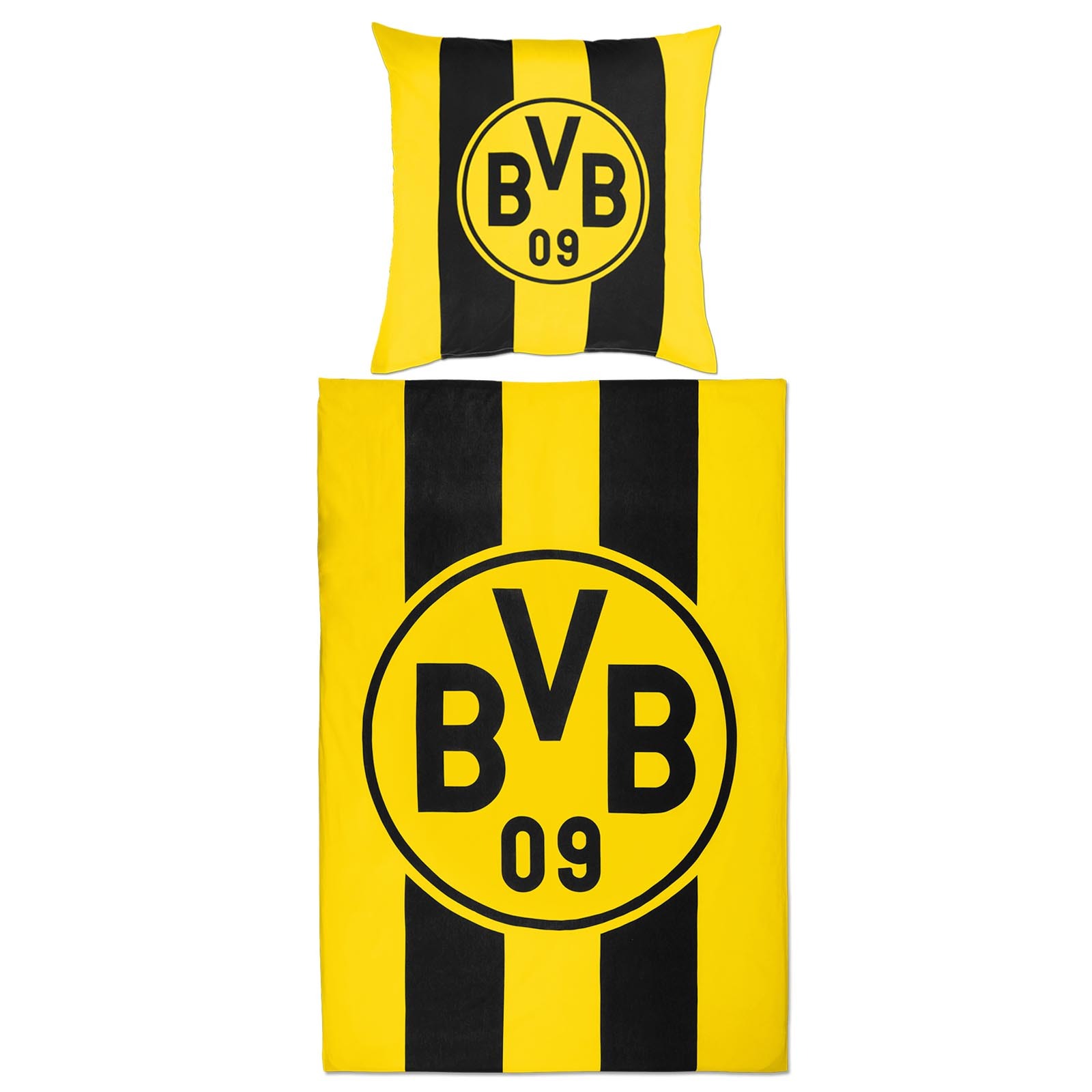 Dit is een officieel Borussia Dortmund dekbedovertrek en kussensloop voor één persoon. Het dekbed en het kussen zijn geheel in stijl van de clubkleuren van Borussia Dortmund en zijn voorzien van het logo van van Borussia Dortmund. Het Borussia Dortmund dekbekovertrek is zwart met geel gestreept en is voorzien van het Borussia Dortmund logo. De kussensloop heeft een afmeting van 80 bij 80 centimeter en het dekbedovertrek heeft een afmeting van 135 bij 200 cm. Dit betreft een set voor een éénpersoonsbed. Perfect voor de echte Borussia Dortmund fan! Het dekbekovertrek wordt geleverd in een speciale tas van de Duitse voetbalclub.