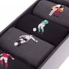 Herkenbare casual sokken van het merk COPA Football van de legendarische voetballer George Best. Naast de mooie dingen die Best op het veld liet zien, hield Georgie ook van de mooie dingen naast het veld zoals vrouwen en auto's. De box set bevat vier verschillende sokken met allen een herkenbaar moment uit de geschiedenis van George Best: