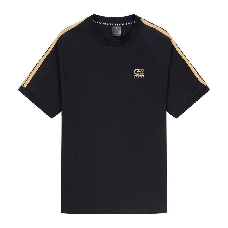 Het Cruyff Onyx T-Shirt in zwart met gouden details is een stijlvol eerbetoon aan Johan Cruijff en het legendarische Nederlands Elftal van de jaren ’70. Dit iconische tijdperk in de voetbalgeschiedenis vormt de inspiratie voor een shirt dat sportieve heritage en moderne uitstraling perfect samenbrengt.