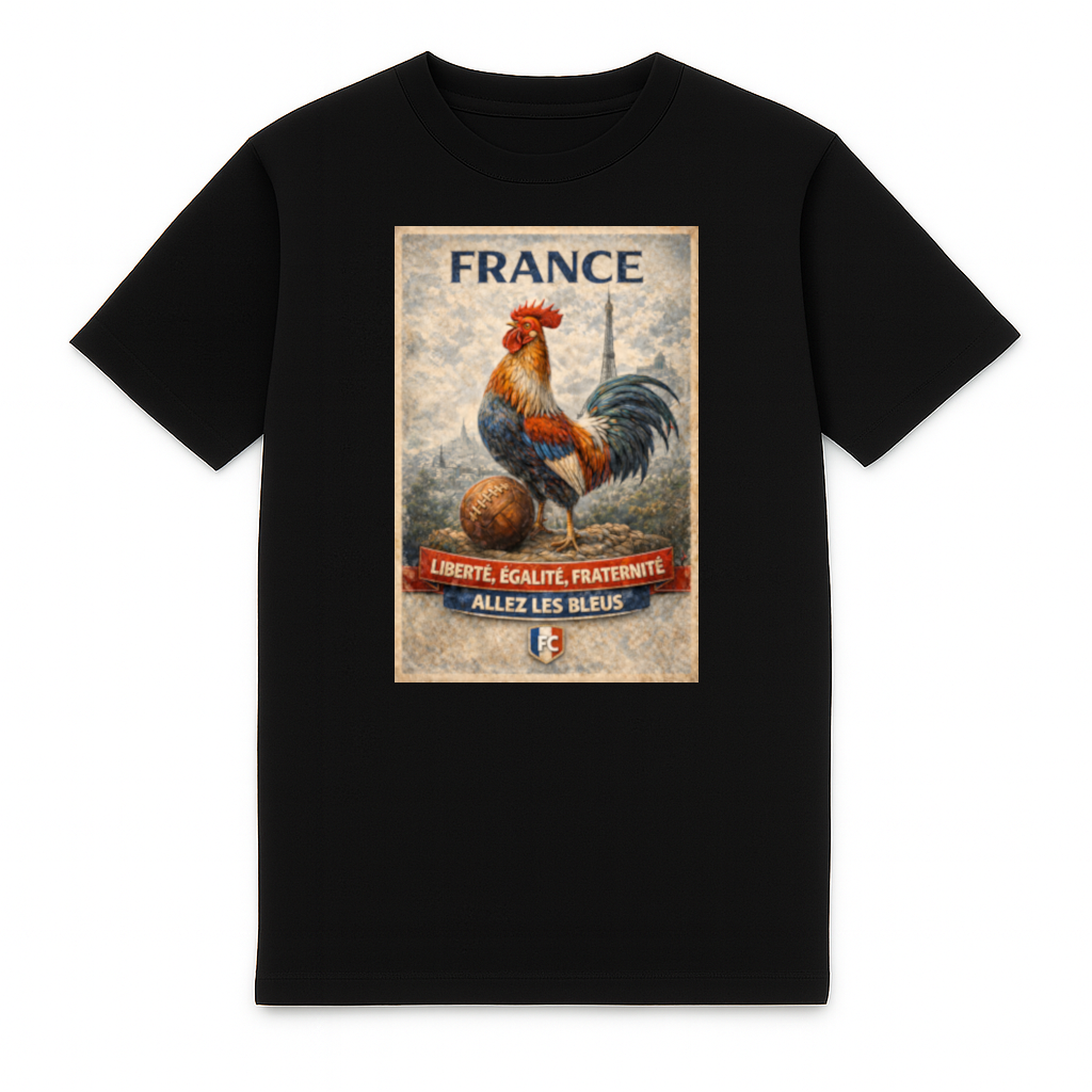 Stijlvol Frankrijk heavy t-shirt van FC ELEVEN voor volwassenen. Het heavy t-shirt is gemaakt van zwaar biologisch katoen. De achterkant het t-shirt bevat een print van een schild met een 3D print van de bekende Franse haan met een retro voetbal! Deze print is geheel in stijl van de nationale kleuren van het land: blauw, wit en rood. Bovendien bevat de print de teksten: 'Liberte, Egalite, Fraternite' en 'Allez Les Bleus'. Speciaal om het nationale elftal van Frankrijk aan te moedigen. Het t-shirt is verder voorzien van de initialen van het merk FC in het zwart op de linkerborst. Dit betreft een siliconen logo. Het heavy t-shirt is volledig zwart en is voorzien van een ronde hals. Het t-shirt gemaakt van zwaar katoen en heeft een normale pasvorm. Materiaal: 100% organisch katoen.