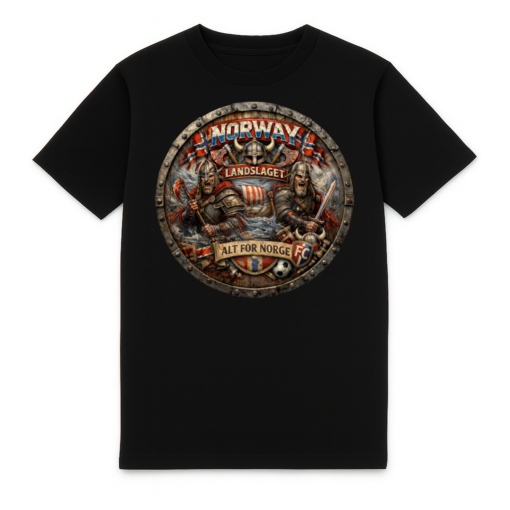 Stijlvol Noorwegen heavy t-shirt van FC ELEVEN voor volwassenen. Het heavy t-shirt is gemaakt van zwaar biologisch katoen. De achterkant het t-shirt bevat een print van een schild met een 3D print van Noorse Vikingen en op de achtergrond vlaggen van Noorwegen! Deze print is geheel in stijl van de nationale kleuren van het land en is rood met wit. Bovendien bevat de print de teksten Landslaget en Alt For Norge. Speciaal om het nationale elftal van Noorwegen aan te moedigen. Het t-shirt is verder voorzien van de initialen van het merk FC in het zwart op de linkerborst. Dit betreft een siliconen logo. Het heavy t-shirt is volledig zwart en is voorzien van een ronde hals. Het t-shirt gemaakt van zwaar katoen en heeft een normale pasvorm. Materiaal: 100% organisch katoen.