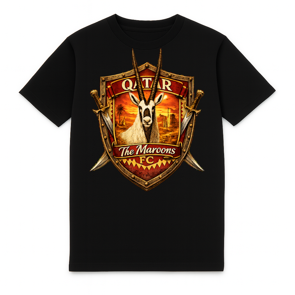 Stijlvol Qatar heavy t-shirt van FC ELEVEN voor volwassenen. Het heavy t-shirt is gemaakt van zwaar biologisch katoen. De achterkant het t-shirt bevat een print van een schild met een 3D print van een Arabische Oryx, de naam van het land en de bijnaam van het nationale elftal: The Maroons! Bovendien bevat de print aan de zijkaten zwaarden. Het t-shirt is verder op de voorkant voorzien van de initialen van het merk FC in het zwart op de linkerborst. Dit betreft een siliconen logo. Het heavy t-shirt is volledig zwart en is voorzien van een ronde hals. Het t-shirt gemaakt van zwaar katoen en heeft een normale pasvorm. Materiaal: 100% organisch katoen.
