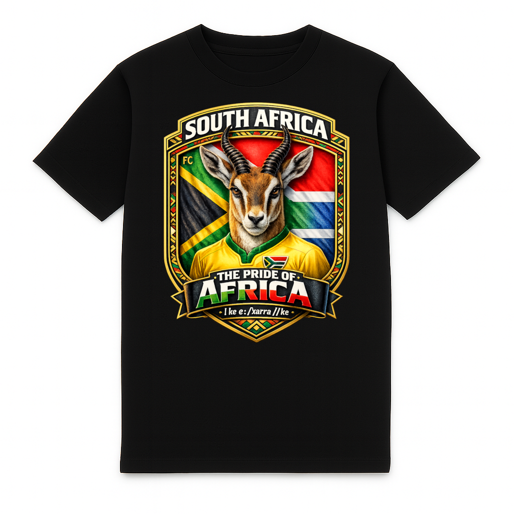 Gaaf Zuid-Afrika voetbal t-shirt van FC ELEVEN voor volwassenen. Het heavy t-shirt is gemaakt van zwaar biologisch katoen. De achterkant van dit T-shirt is een echte eyecatcher: een stoere Zuid-Afrika-print met de iconische Afrikaanse steenbod, uitgevoerd in de kleuren van de Zuid-Afrika. Het krachtige dier is afgewerkt met de trotse bijnaam én het inspirerende motto van het land (Eenheid in verscheidenheid). Een design met karakter en betekenis! Het t-shirt is verder voorzien van de initialen van het merk FC in het zwart op de linkerborst. Dit betreft een siliconen logo. Het heavy t-shirt is volledig zwart en is voorzien van een ronde hals. Het t-shirt gemaakt van zwaar katoen en heeft een normale pasvorm. Materiaal: 100% organisch katoen.