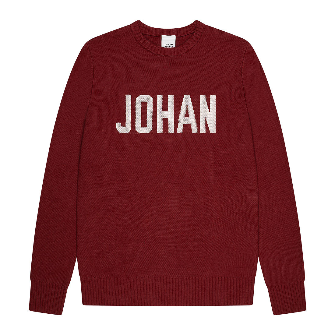 De Johan Cruyff ‘Johan’ Knit Crewneck sweater in bordeaux is een stijlvolle en comfortabele toevoeging aan elke garderobe. Deze regular-fit herentrui is voorzien van een opvallende ‘Johan’ print op de borst, wat zorgt voor een moderne en herkenbare uitstraling.
