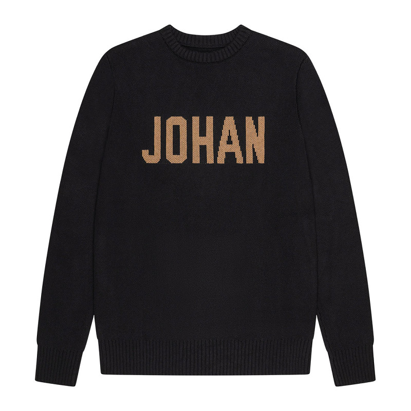 De Johan Cruyff ‘Johan’ Knit Crewneck sweater in zwart is een tijdloze en veelzijdige toevoeging aan elke garderobe. Deze herentrui heeft een comfortabele regular-fit pasvorm en is voorzien van een grote ‘Johan’ print op de borst, wat zorgt voor een herkenbare en moderne uitstraling.